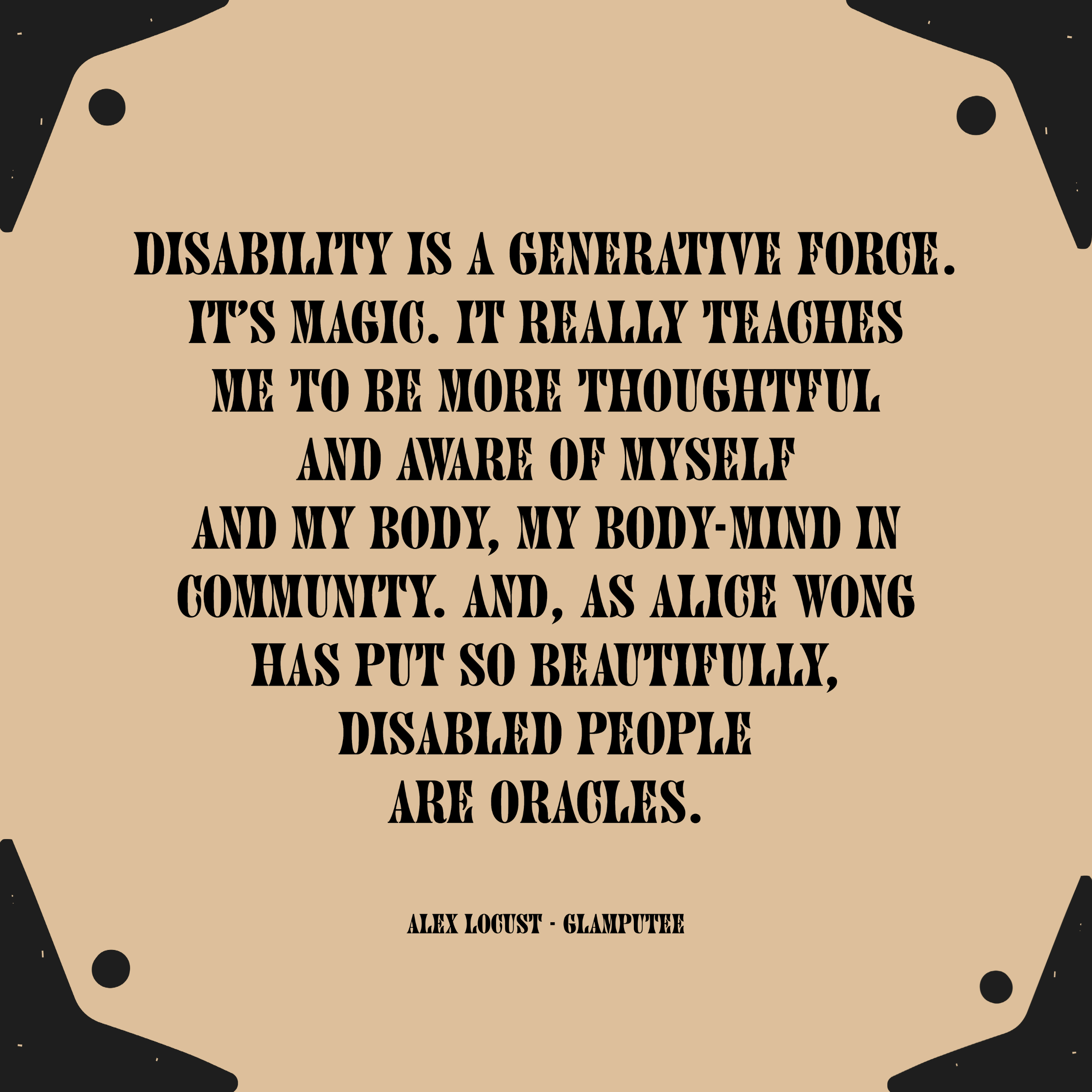 This is a website featuring ‘telegrams’ by disabled oracles to the world in the form of text, video, audio, and graphic art. A living chorus and archive of disabled wisdom from the past, present and future.
