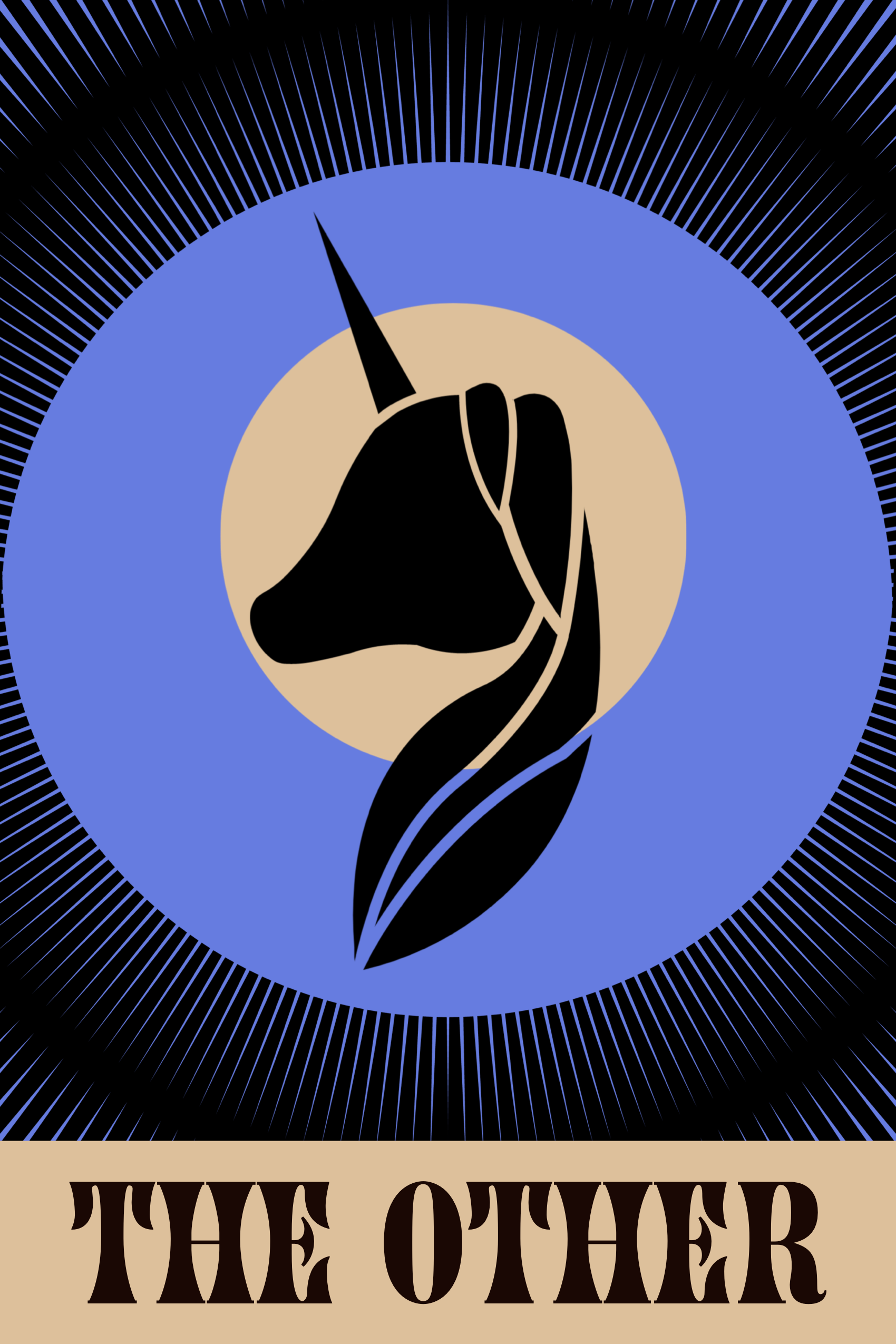 [Image Description: Digitally illustrated vector graphic of a silhouette of a black unicon. The unicorn is centered the middle of the frame and illuminated by a cream colored circle behind it. The title on the bottom of the frame reads: The Other (in upper case bold black decorative lettering)